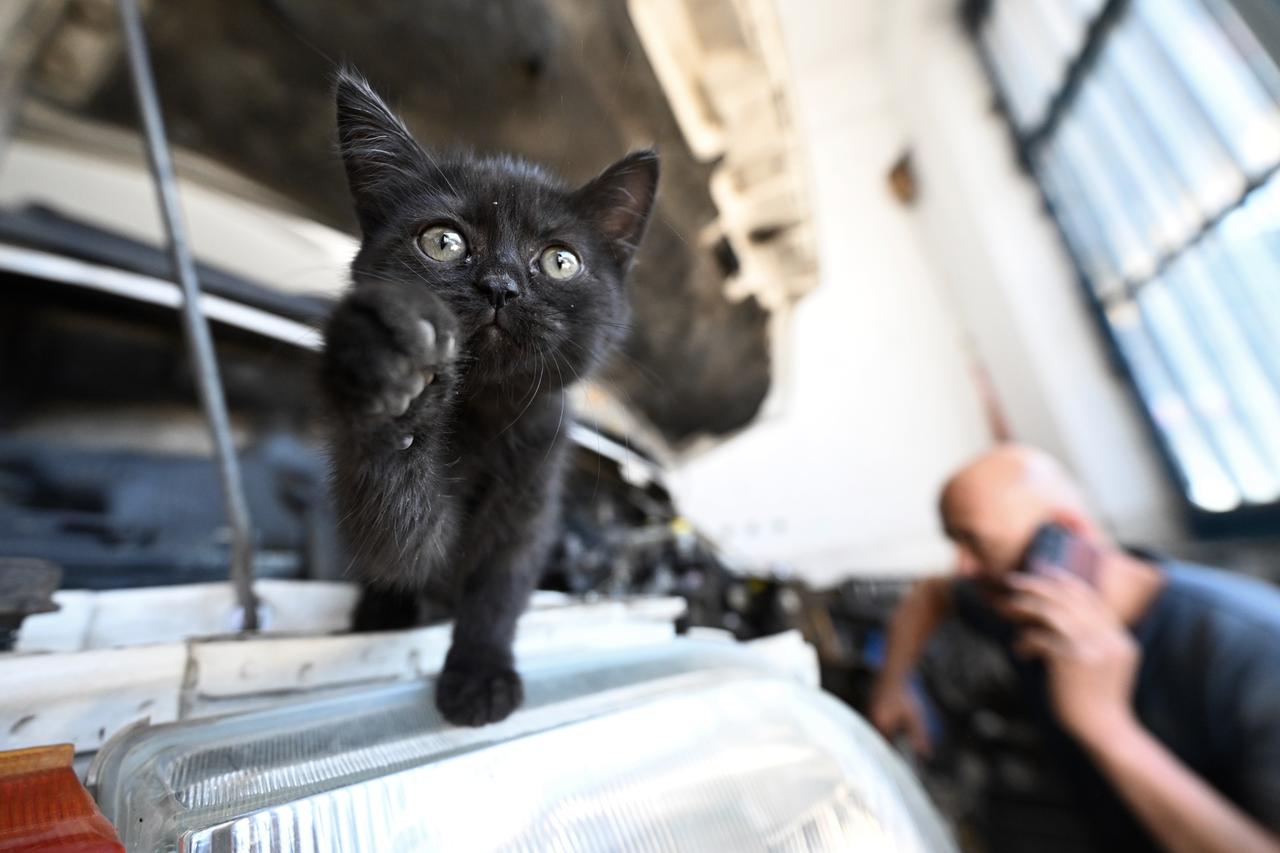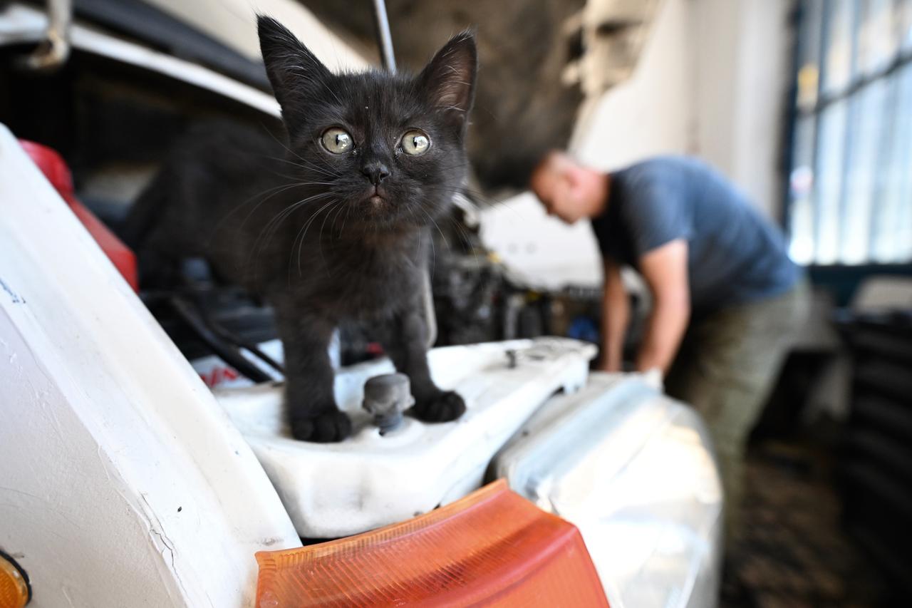 After opening the car's hood, Ataseven discovered a small kitten trapped in the engine compartment.