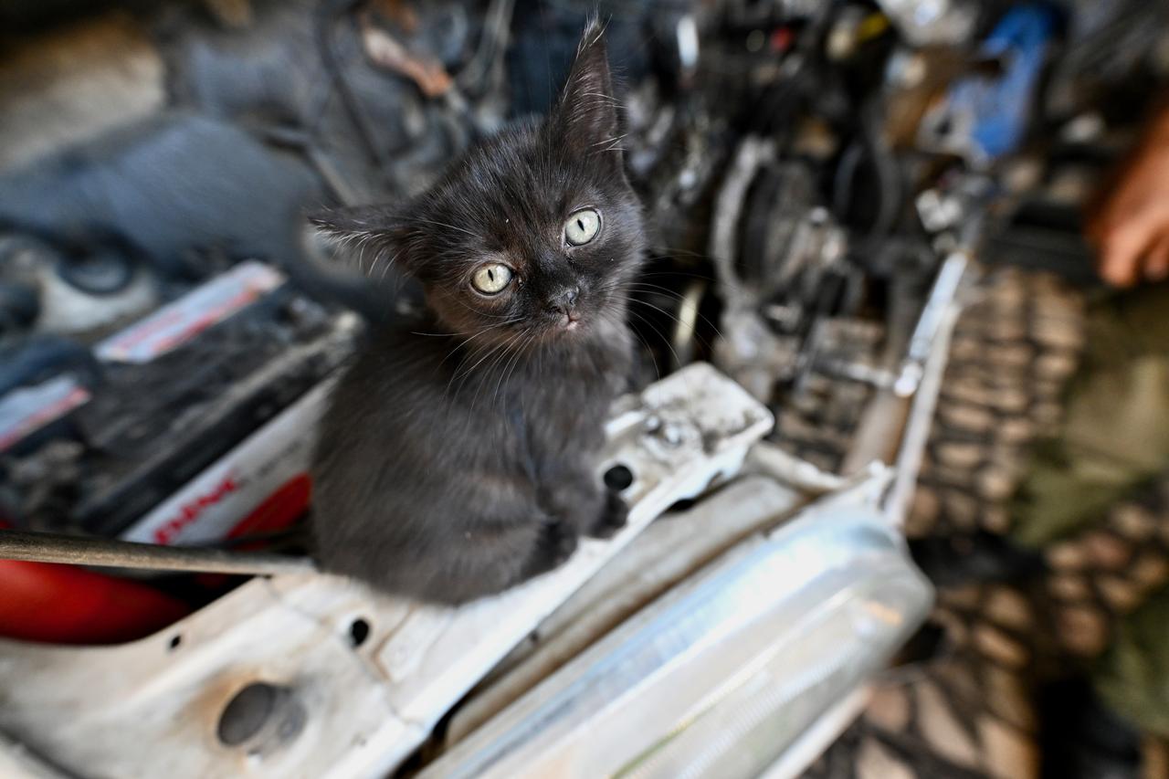 A kitten discovered in a car's engine compartment has found a new home at the auto repair shop where it was rescued, becoming the beloved mascot of both workers and customers in Duzce, Türkiye.