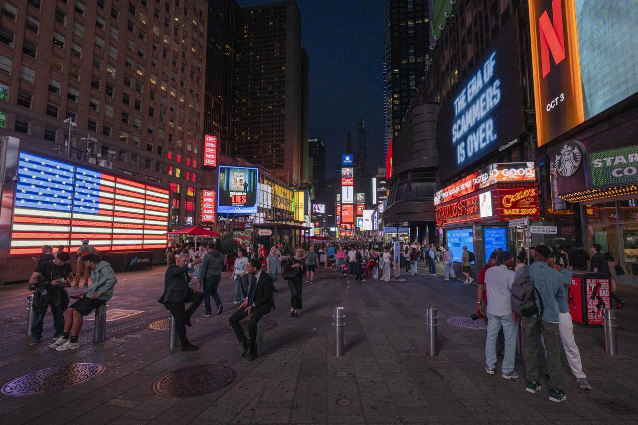 His other motto, “A fairer world is possible,” was displayed on LED screens in Times Square.