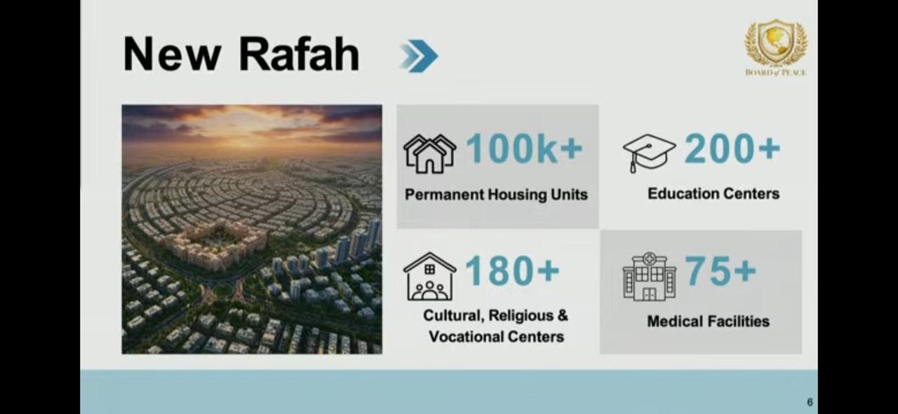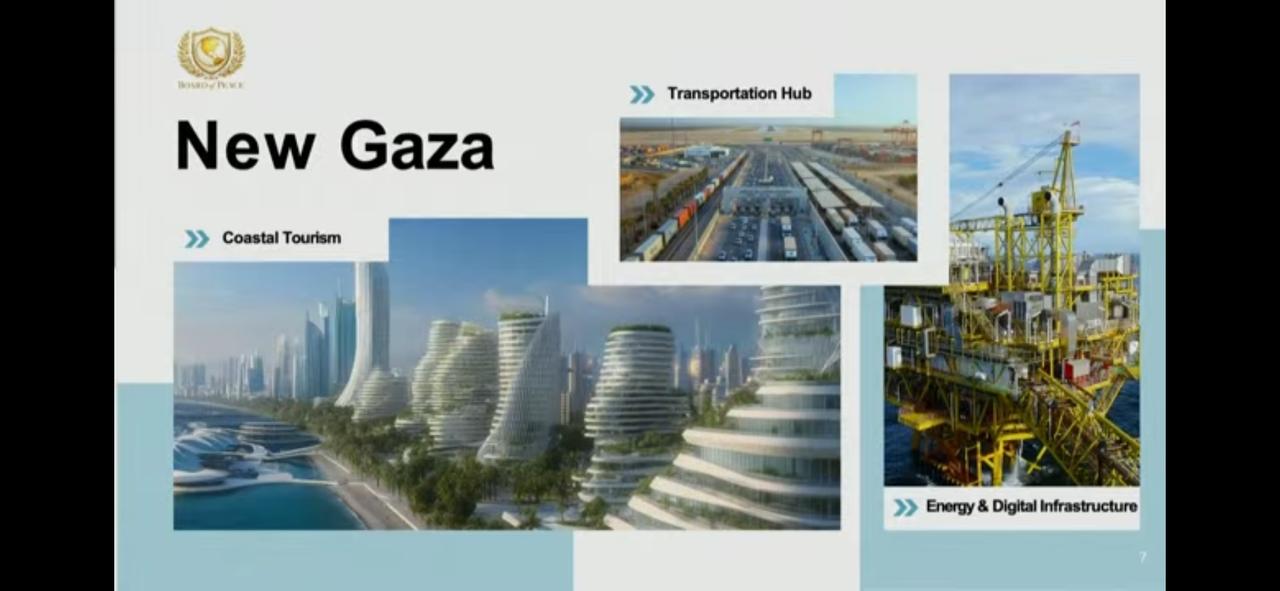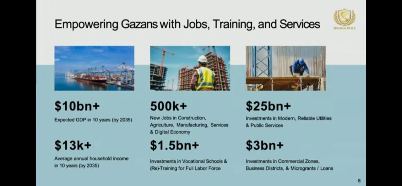 Jared Kushner, Trump's son-in-law, involved in Middle East negotiations, presented a slide deck featuring real estate development plans organized by zones.