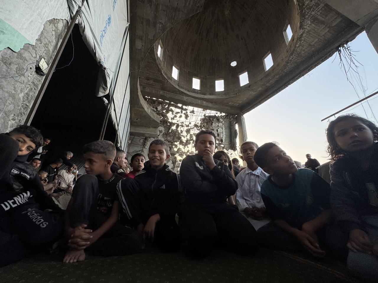 In war-ravaged Gaza, displaced Palestinians gathered in Al-Katiba neighborhood to pray under tents, clinging to hope on Eid.