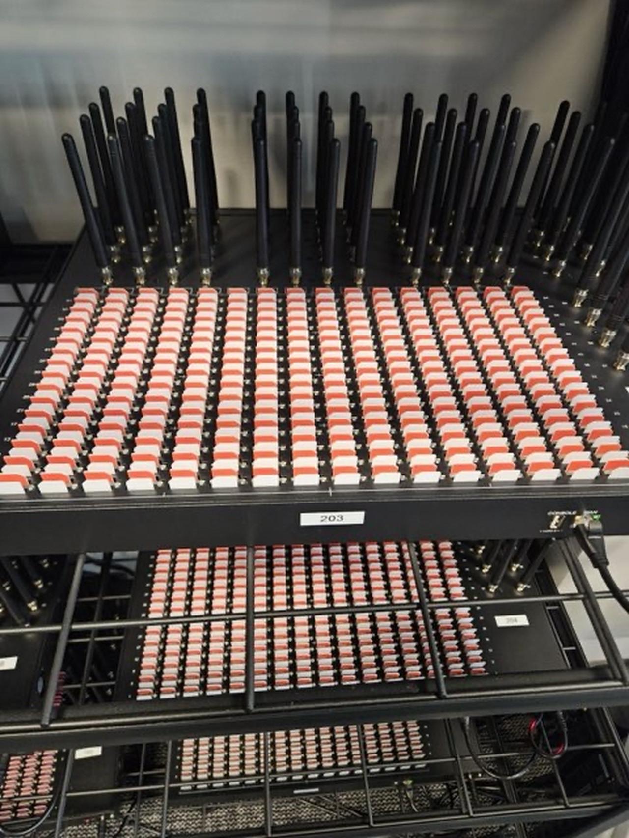 The seized equipment included floor-to-ceiling shelves stacked with servers equipped with antennas and SIM cards. Beyond the 100,000 activated cards, agents discovered additional SIM cards waiting to be deployed.